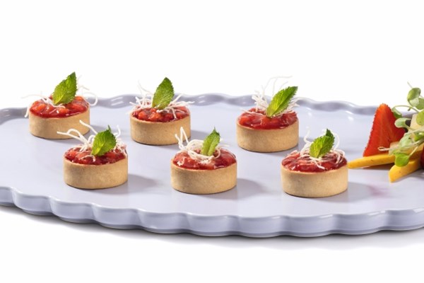 - Remove the set panna cotta from fridge, cut to desired shape (i.e., cylinders), and place into the 46mm Baked Vegan & Gluten Free Shortbread Shells.