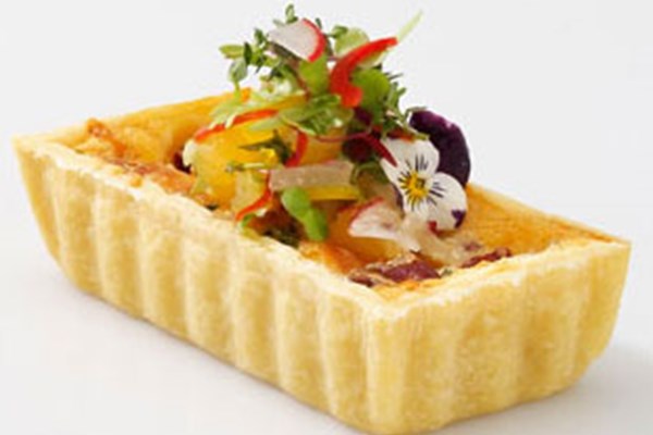 - 将蛋液和奶油混合物均匀倒入已放有番茄和奶酪的酥壳中,然后在170℃的烤箱内烘烤12至15分钟。